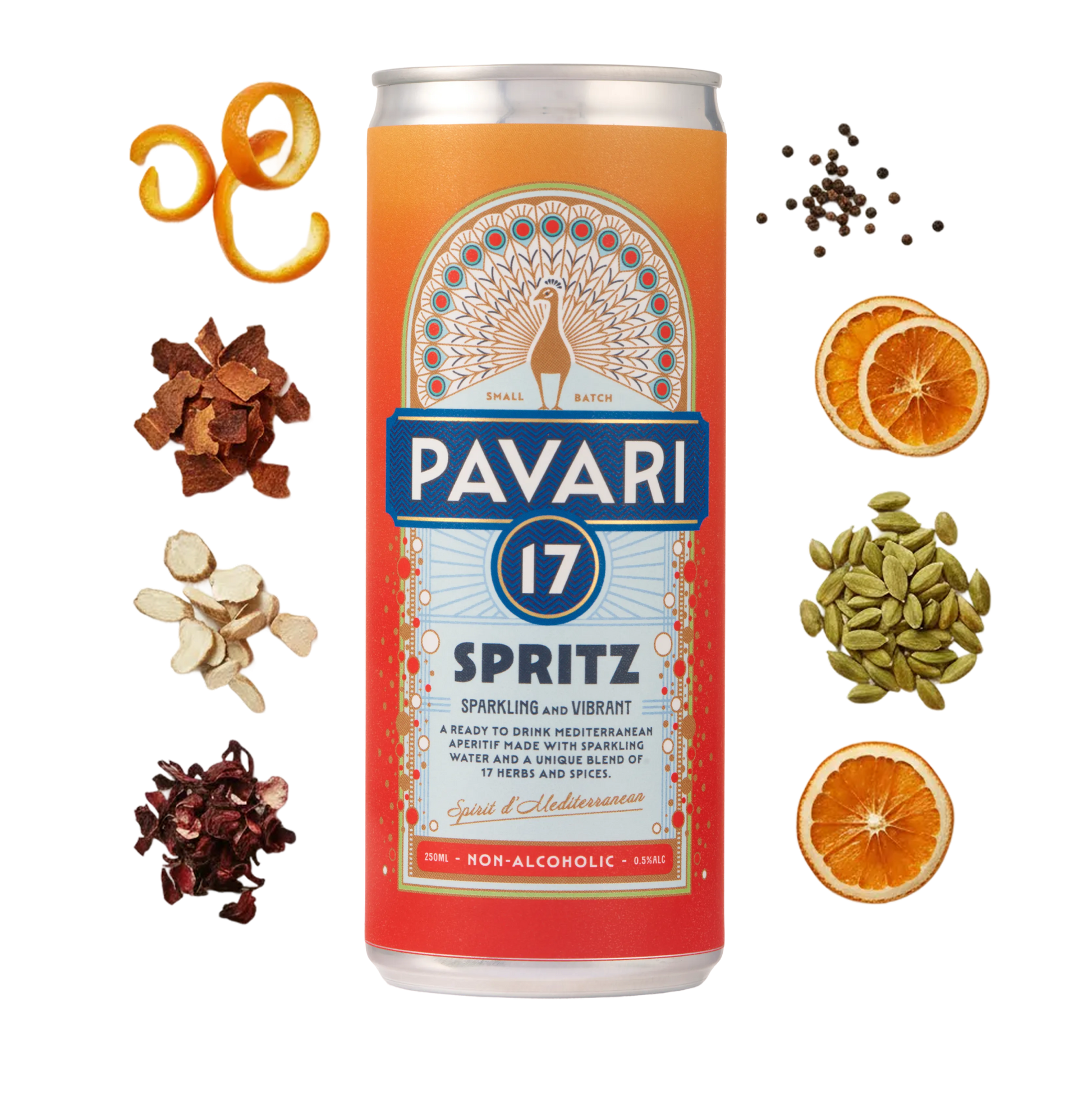 Pavari 17 Spritz - Alcohol-Free Mediterranean Spritz - 250ml can - 12 Pack
